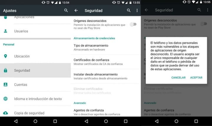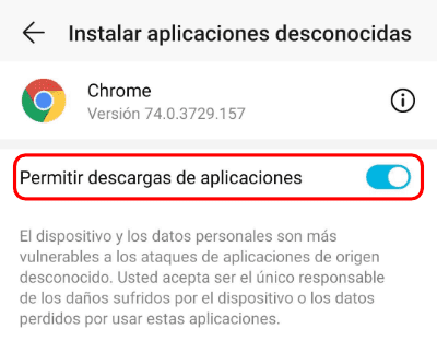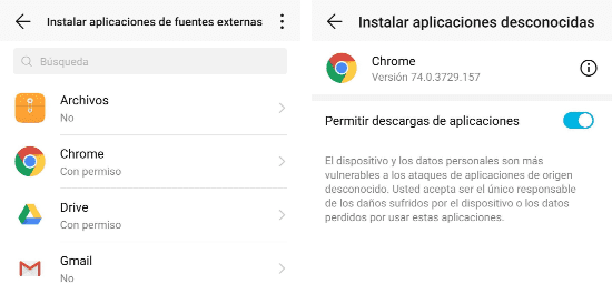 Habilita la instalación de aplicaciones desde orígenes desconocidos
